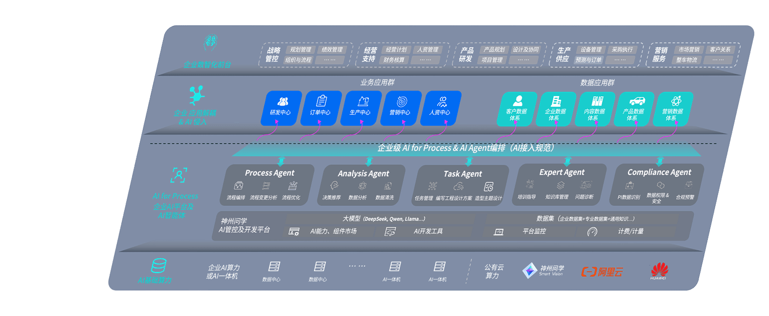大玩家问学智车解决方案是一套基于AI技术的汽车行业智能化系统,,,,覆盖从底层算力到顶层AI应用的全栈方案。。。方案由算力层、、模型层和应用层组成:算力层,,,,方案支持多种一体机配置,,具备云端灵活部署、、、、多云适配以及动态优化计算资源的能力;模型层,,,,大玩家问学平台版提供了企业级AI应用一站式构建与管理平台,,,支持基于后训练强化技术的汽车企业专属模型的训练、、、评测和运营;应用层,,,大玩家问学DeepSeek版提供包括超级员工、、、、智能招采、、、智能营销、、、智能客服、、AI for BI等一系列解决方案,,,,可助力汽车行业实现数字化转型,,,,让管理更智能、、响应更敏捷。。。